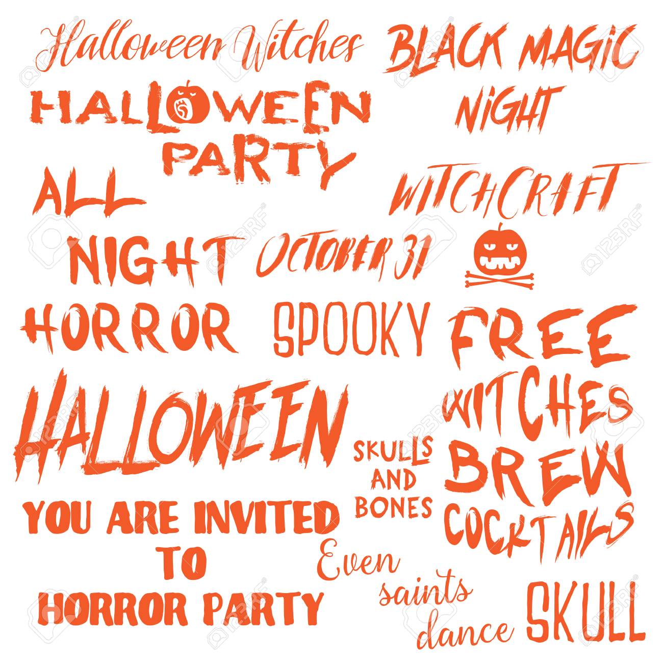 Set Of Halloween Quotes For Posters About Halloween Party And Scary Phrases For Greeting Card Printable Wall Art Designs And Flyers Different Font Calligraphy Collection Vector Royalty Free Cliparts Vectors And Stock