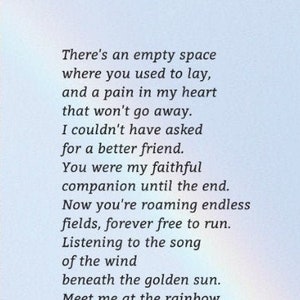 Whether missing a dear pet yourself or looking for a gift for a. Time for me to go but I am not far away look for a sign Ill send to you. My heart it needs to mend Though some may say its just a pet I know Ive lost a friend.